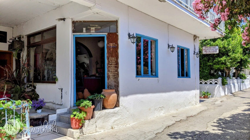 In Kamariotissa, on the street parallel to the sea, you can also find a lot of the cafes and bars in Samothraki. Try Santigi for coffee, pastries and sweets, Totem for bougatsa (pie with cheese, minced meat or vanilla custard), Kentriko for coffee and pancakes (and of course deserts, when you can find them - Laskaris, the owner of the cafe, is a famous patisserie chef in Greece) and To Scholeio for cocktails.