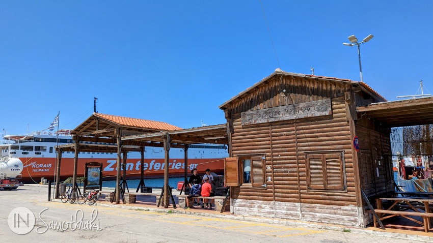 The Port Authority is on the main street of Kamariotissa, opposite the square with the Niki statue.