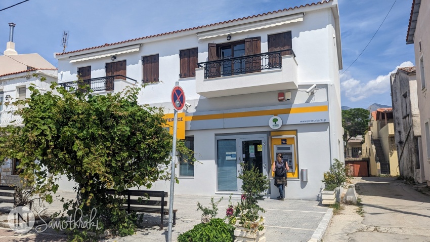 On the main street (the one parallel to the harbor), across from Niki's statue, is a branch of Piraeus Bank (the only bank in Samothraki). You will find an ATM here. Another one, which belongs to the National Bank of Greece (Ethniki Trapeza which, until a few years ago, also had a branch on the island), is a few buildings to the right.